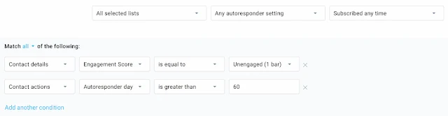 For example, with a tool like GetResponse, you can create a segment of subscribers who signed up over 60 days ago and have a low engagement score—this tells you they’re probably not interested anymore.